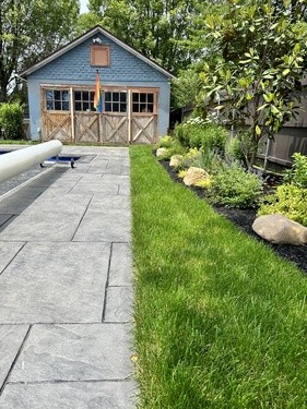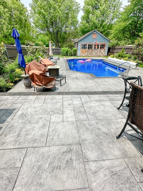 The original space was functional but lacked character and flow. We reimagined it into a fully integrated backyard retreat, blending custom stamped concrete with design elements like lush grass and vibrant plants to enhance both the pool and surrounding space, creating a cohesive, inviting atmosphere.